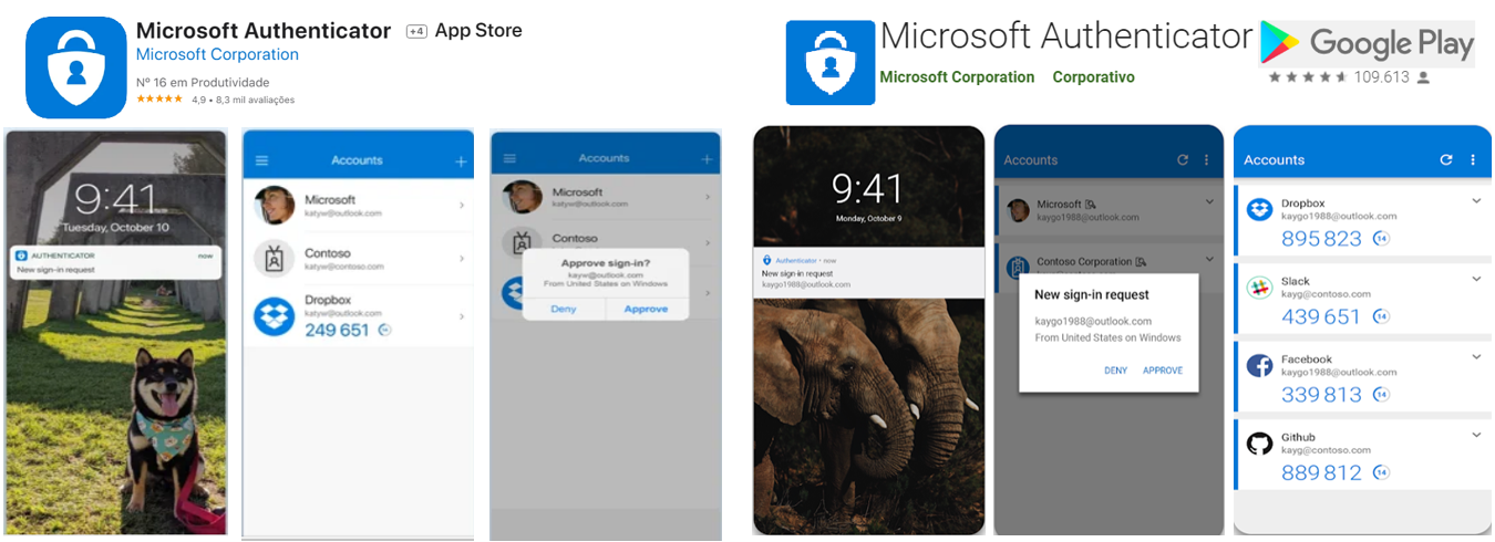 Para dispositivos que utilizam Android, basta instalar o Microsoft Authenticator no Google Play.